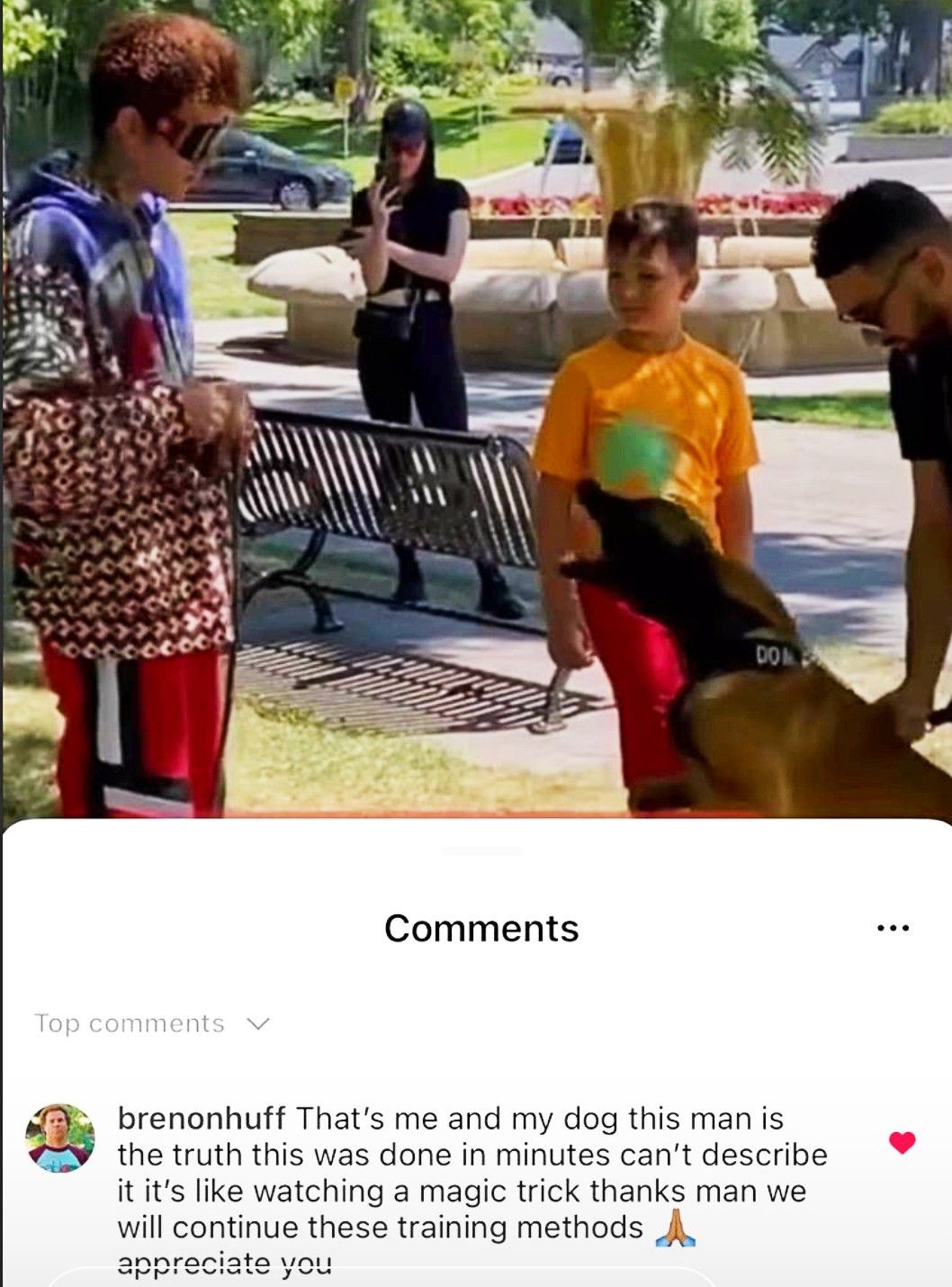 "We were seriously considering giving Raiden up because she is so unruly. We've tried to get her trained before but to no avail. Ray found @thedogdaddyofficial and got him to come train her. Within 30 mins she was a different dog. We are in utter shock to see how well behaved she has been. Dog Daddy is f*ing incredible."