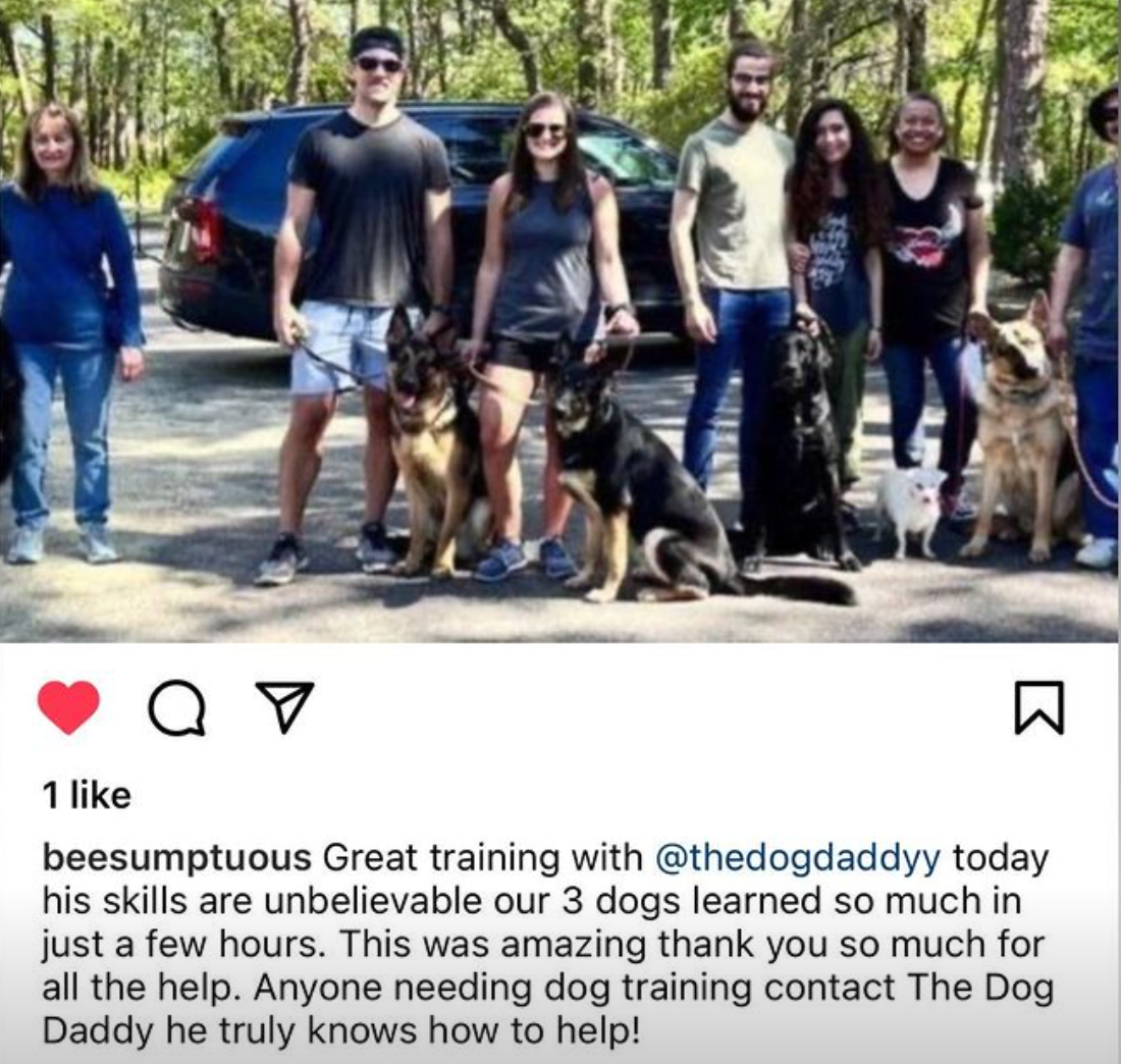 "He got Capone to stop pulling on the leash in less than 2 minutes!!! Our littles are now able to walk him. The Dog Daddy is incredible, he's full of so much information, patient, answered all our questions and has changed our lives with our pups. Thank you Dog Daddy, you're amazing!"